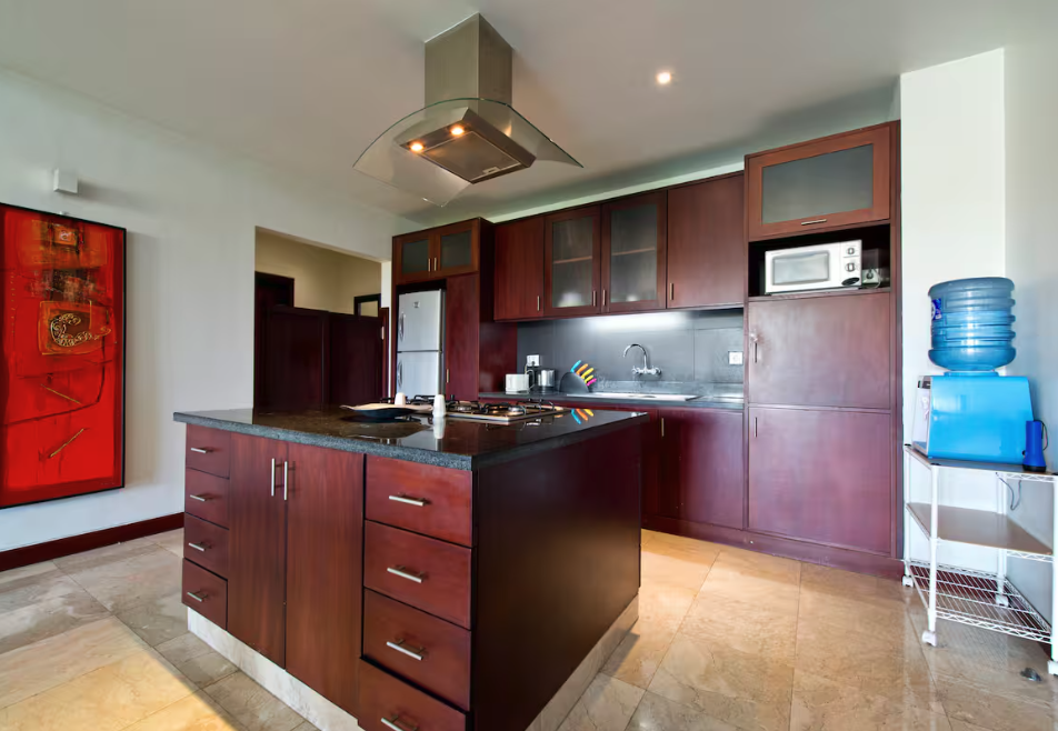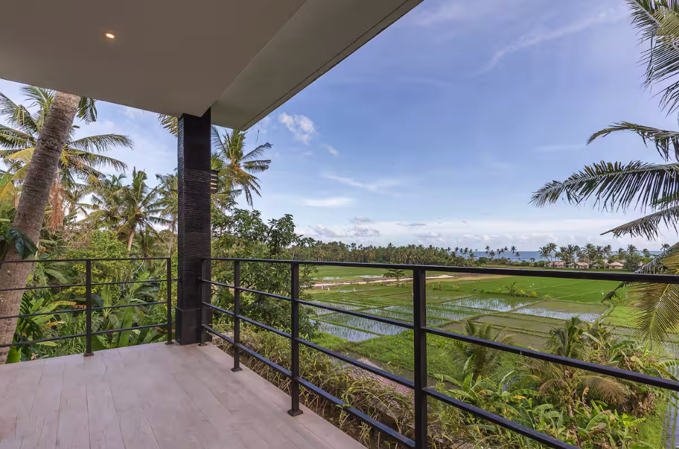 Enjoy the sounds of nature in our unique oceanfront villa. Perched on a hill with sweeping ocean views and rice paddies in between, our villa has everything you need for a luxurious and memorable vacation. Designed for extended stays, our villa includes a fully equipped kitchen with ample storage space, an oven, a dishwasher, and more.