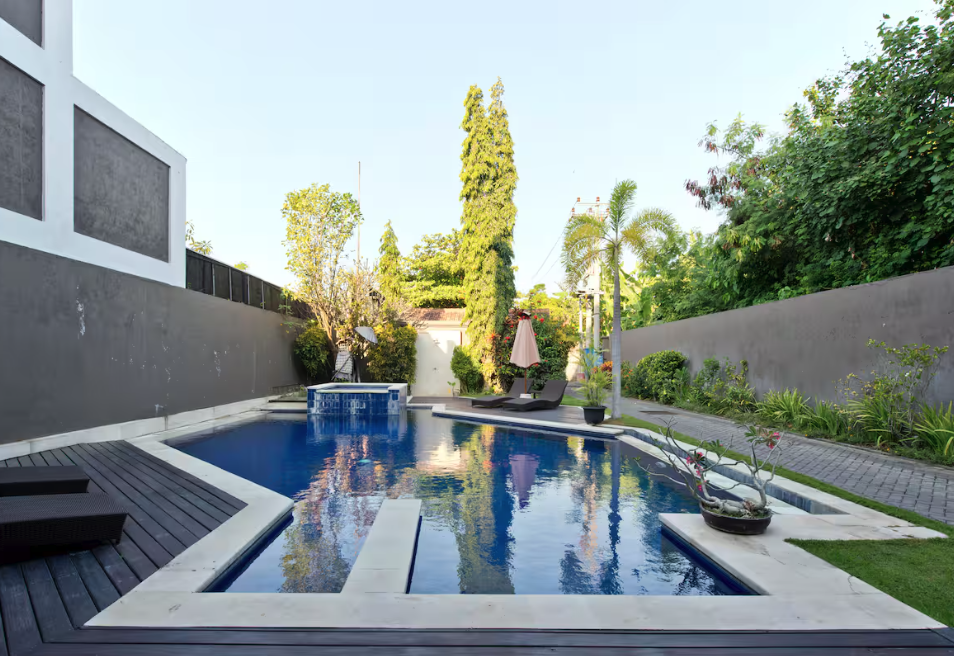Located in the prestigious Renon Sanur area, this spacious 3-bedroom home is just 10 minutes from the heart of Sanur and the beach. Renon is famous for its lush parks, wide boulevards, and incredible culinary scene—with dozens of restaurants just a short walk away! Relax in our peaceful neighborhood with a private backyard pool and both front and rear verandas. Our two-story layout features 2 King beds and 3 Singles, providing plenty of space for families or groups. Plus, an exterior kitchen keeps cooking aromas outside for a fresh interior.